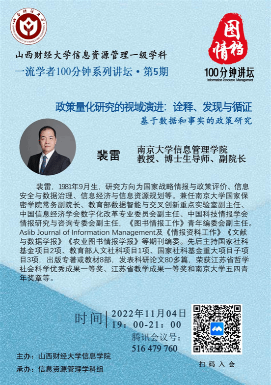 讲座题目:政策量化研究的视域演进:诠释、发现与循证——基于数据和事实的政策研究