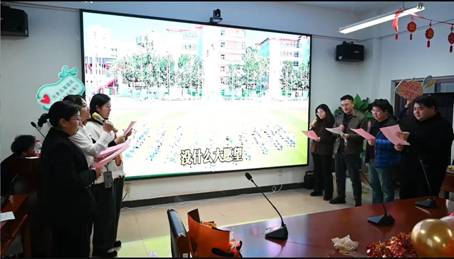 全体行政人员表演的《三句半》幽默风趣;数据科学与大数据技术教研室老师们则以饱满的热情唱响《国家》,抒发了大家的家国情怀;大学计算机基础课教研室全体教师表演的《精灵舞》灵动俏皮,尽显活力。最后,元旦座谈联欢会在全体辅导员合唱的《小美满》歌声中落下了帷幕。