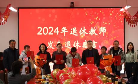 高书记、李院长在2024年退休教师全玮、南志红、尚成国、原燕萍、李平珍、李建芬、李爱军依次发表退休感言后为他们颁发了荣退证书,为闫勇、白增亮两位教师颁发了世界杯冠军预测